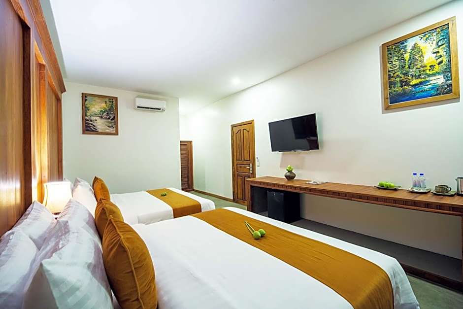 This air-conditioned deluxe double room features a private balcony . It is fitted with a flat-screen TV, desk, and mini-bar. 24-hour express check-in & check-out service.The unit offers 1 King Size Bed and 2 Single Beds.